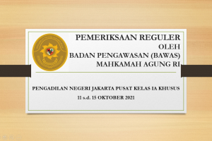 Senin, 11 Oktober 2021 Pengadilan Negeri Jakarta Pusat Kelas I A Khusus mendapat kunjungan dari Tim Pemeriksa Badan Pengawasan Mahkamah Agung Republik Indonesia. Kunjungan kali ini sebagai Monitoring sekaligus Pemeriksaan Reguler terhadap Kinerja Pengadilan Negeri Jakarta Pusat Kelas I A Khusus. Tim Pemeriksa yang dipimpin oleh Bapak Samsudin, Hakim Tinggi…