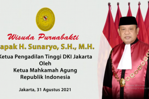 Jakarta, 31 Agustus 2021. Bertempat di Aula Pengadilan Tinggi DKI Jakarta, Jalan Letjen Suprapto, Cempaka Putih, Jakarta, dilaksanakan Wisuda Purnabakti Ketua Pengadilan Tinggi DKI Jakarta, YM H. Sunaryo, S.H., M.H., oleh Ketua Mahkamah Agung Republik Indonesia, YM Prof. Dr. H.M. Syarifuddin, S.H., M.H., secara Virtual yang diikuti oleh Seluruh Hakim…
