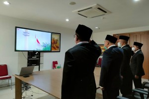 Selasa, 17 Agustus 2021. Bertempat di Command Center, Lantai 4, Gedung Pengadilan Negeri Jakarta Pusat Kelas I A Khusus, Ketua, Bapak Muhammad Damis, S.H., M.H., Wakil Ketua, Bapak Dr. H. Sobandi, S.H., M.H., Panitera, Bapak Mustafa Djafar, S.H., M.H., dan Sekretaris, Bapak Drs. Sofyan Amin, S.H., mengikuti mengikuti Upacara Penurunan Bendera Sang Merah Putih dalam rangka Peringatan Hari Ulang Tahun ke-76 Kemerdekaan Republik Indonesia Tahun 2021 secara…