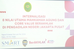 Rabu, 29 Mei 2024 bertempat diruang Auditorium lantai 7 Gedung Pengadilan Negeri Jakarta Pusat Kelas IA Khusus, Ketua Pengadilan Negeri Jakarta Pusat Kelas I A Khusus Bapak Dr. Rudi Suparmono, S.H., M.H. didampingi Wakil Ketua Pengadilan Negeri Jakarta Pusat Kelas IA Khusus Bapak Muhammad Arif Nuryanta, S.H., M.H., melakukan sosialisasi…