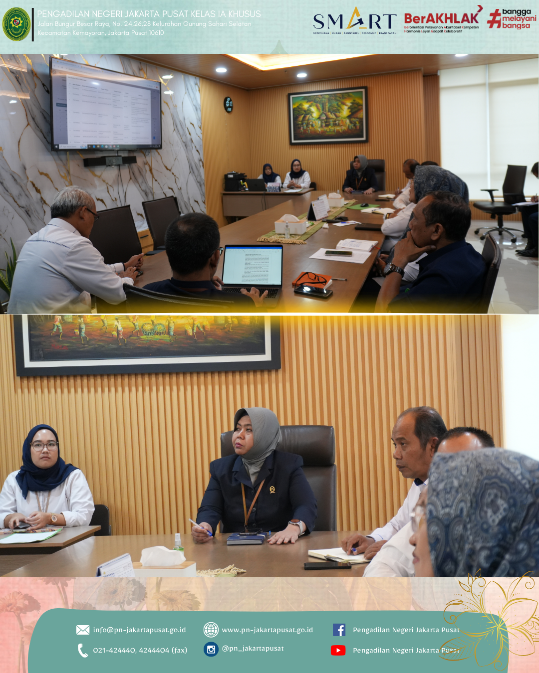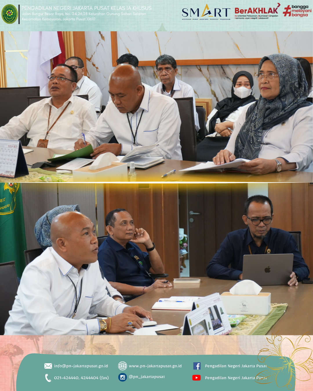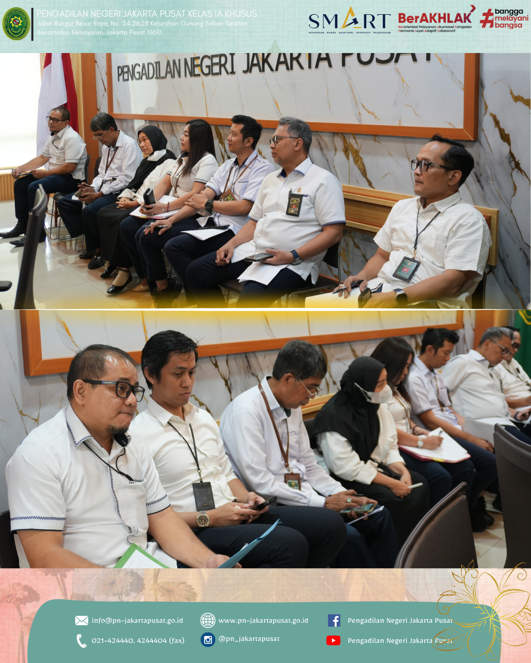 Senin, 23 Februari 2026, bertempat di Ruang Media Center Lt. 4, Pengadilan Negeri Jakarta Pusat melaksanakan kegiatan Monitoring dan Evaluasi (Monev) Perkusi Periode Januari 2026 sebagai bentuk komitmen dalam meningkatkan kualitas pelaksanaan tugas.