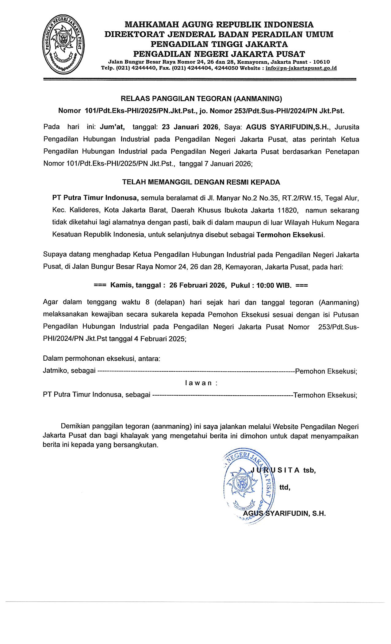 Senin, 6 Januari 2025. Bertempat di Ruang Auditorium Lantai 7 Gedung Pengadilan Negeri Jakarta Pusat Kelas I A Khusus, segenap Keluarga Besar Pengadilan Negeri Jakarta Pusat Kelas IA Khusus melaksanakan Penandatangan Pakta Integritas dan Komitmen Bersama Tahun 2025.