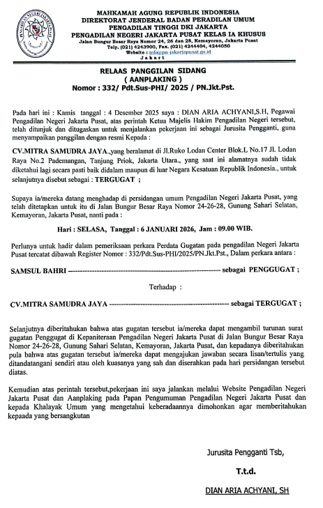 Selasa, 21 Februari 2023 bertempat di ruang Auditorium Pengadilan Negeri Jakarta Pusat Kelas IA Khusus, seluruh warga Pengadilan Negeri Jakarta Pusat melaksanakan peringatan hari Isra Mi’raj Nabi Muhammad SAW 1444H bersama dengan Ustad H.M. Subkhi Al Bughury, S.Sos., M.Ag. Pada acara ini turut hadir Yang Mulia Bapak Ketua Pengadilan Tinggi DKI Jakarta Dr. H. Soedarmadji, S.H., M. Hum, Hakim Tinggi DKI Jakarta, Ketua Pengadilan Negeri Jakarta Barat Bapak A. Bonda, S.H., M.H., Wakil Ketua Pengadilan Negeri Jakarta Timur Bapak. Marliyus M.S, SH., M.H.