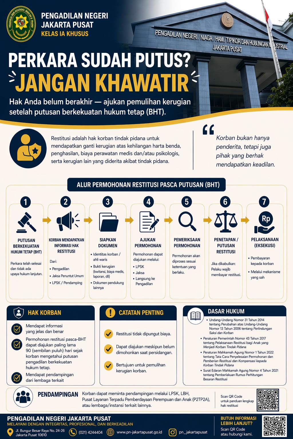 Rabu, 05 Mei 2021. Bertempat di Masjid Al-Hikmah Pengadilan Negeri Jakarta Pusat Kelas I A Khusus, dilaksanakan Pengajian Rutin bagi yang beragama Islam disetiap hari Rabu pagi, dengan tema kajian "Mengoptimalkan Akhir Ramadhan Meraih Lailatul Qadar" bersama Ustad. Dr. Rohaeli, dan diilanjutkan dengan penyampaian santunan kepada anak yatim, yang diikuti oleh Bapak Ketua, Muhammad Damis, S.H., M.H., Bapak/ Ibu Hakim, Bapak/ Ibu Aparatur Sipil Negara dan Bapak/ Ibu Keluarga Besar Pengadilan Negeri Jakarta Pusat Kelas I A Khusus, dengan tetap memperhatikan dan menerapkan protokol Covid-19.