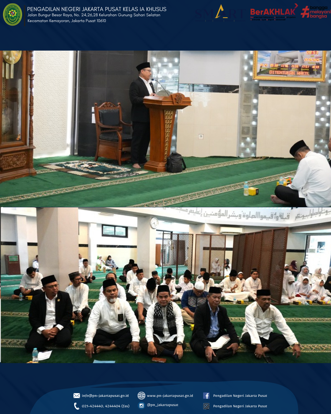 Acara tersebut dilaksanakan di Masjid Al-Hikmah Pengadilan Negeri Jakarta Pusat Kelas IA Khusus. Acara diawali dengan Tilawah Al-Qur’an, dilanjut dengan kata sambutan dari Pengurus Dewan Kemakmuran Masjid (DKM) Masjid Al-Hikmah Pengadilan Negeri Jakarta Pusat Kelas IA Khusus Bapak Purwanto, S.H., M.H.