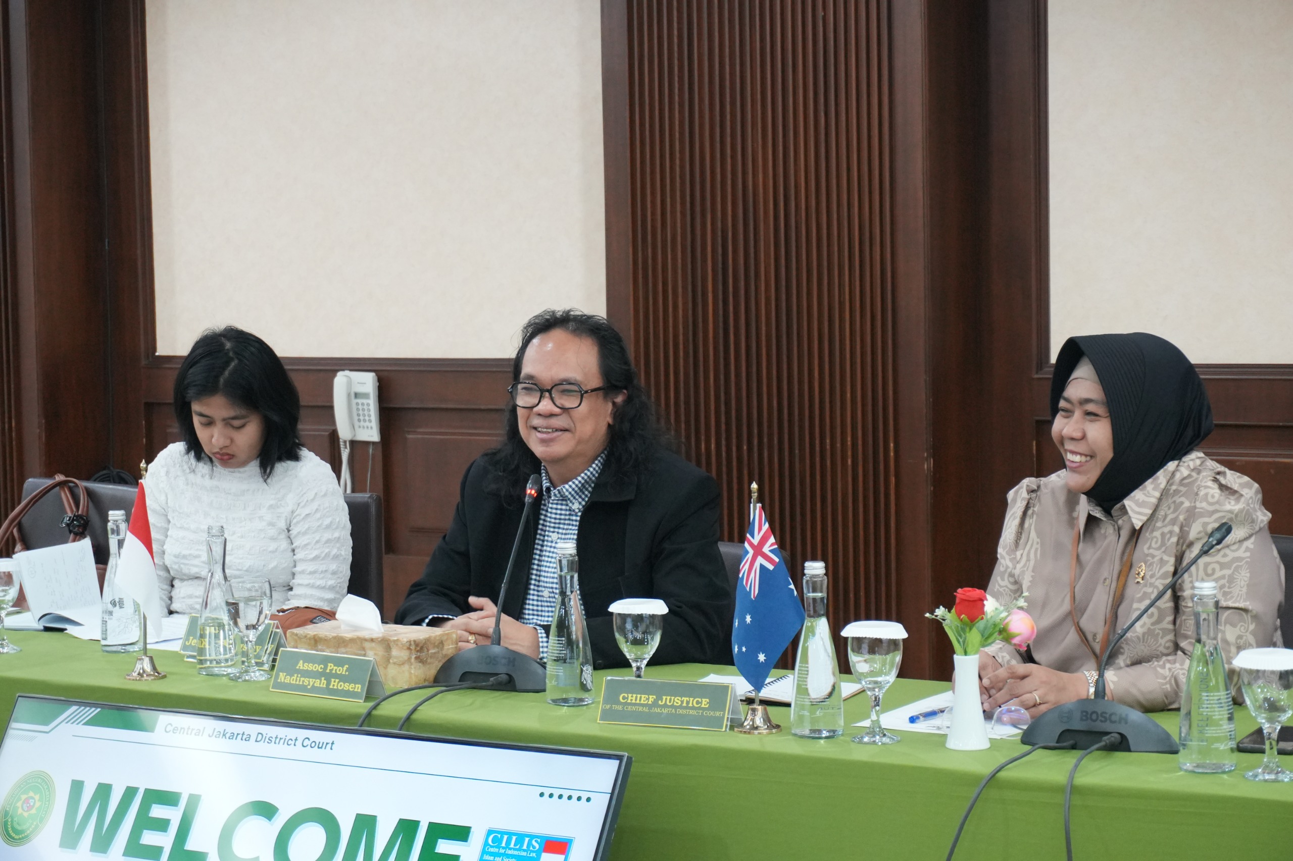 Dalam sambutannya, Ketua Pengadilan Negeri Jakarta Pusat, Ibu Husnul Khotimah, S.H., M.H., “Saya berharap agar kegiatan diskusi ini dapat memberikan dampak positif bagi kedua negara dan dapat terjalin hubungan kerja sama yang semakin baik serta saling menguntungkan antara Australia dan Indonesia, khususnya dalam pengembangan dan penguatan sistem hukum,” ujarnya. Melalui pelaksanaan kunjungan penelitian ini, Pengadilan Negeri Jakarta Pusat menegaskan komitmennya untuk mendukung pengembangan ilmu pengetahuan hukum, peningkatan kualitas peradilan, serta penguatan transparansi dan akuntabilitas lembaga peradilan.