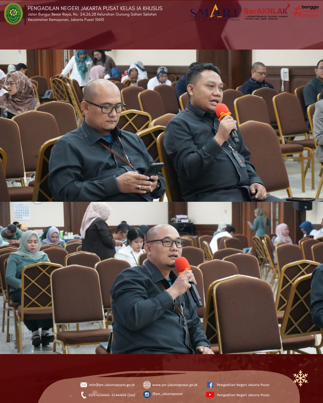 Sosialisasi diikuti oleh Hakim, Pejabat Struktural dan Fungsional, Panitera Pengganti, Jurusita, Pelaksana, serta PPPK di lingkungan Pengadilan Negeri Jakarta Pusat.