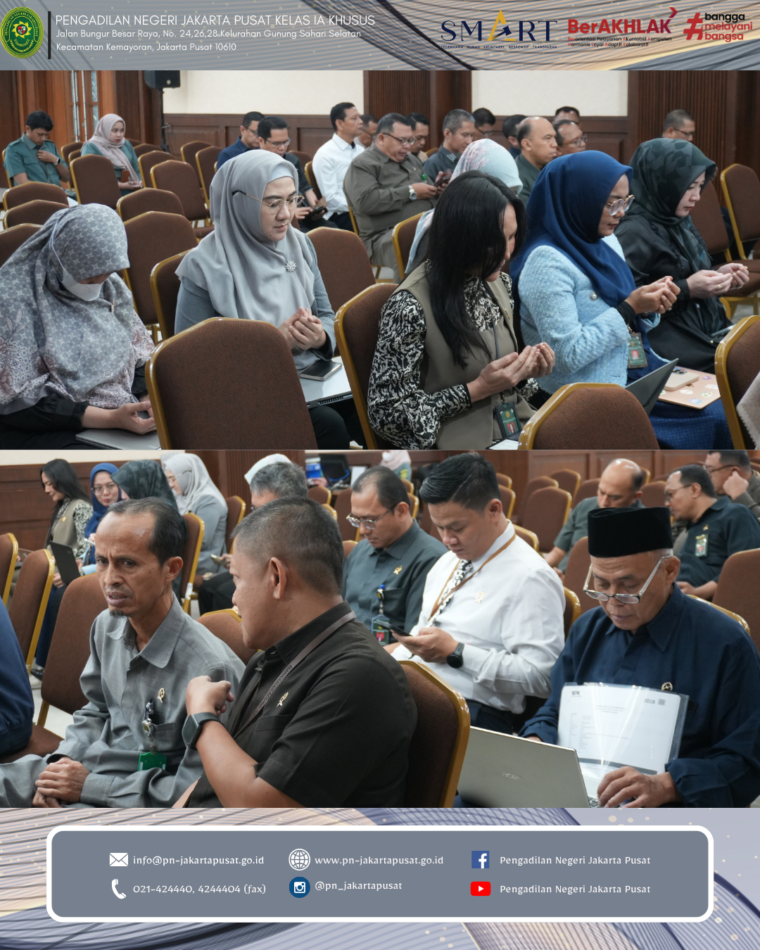 Melalui kegiatan ini, diharapkan seluruh aparatur Pengadilan Negeri Jakarta Pusat semakin memahami pentingnya pelaporan LHKPN sebagai salah satu instrumen pencegahan korupsi. Pelaporan yang transparan dan akuntabel merupakan wujud nyata komitmen dalam membangun lembaga peradilan yang bersih, berintegritas serta bebas dari praktik korupsi, kolusi dan nepotisme.